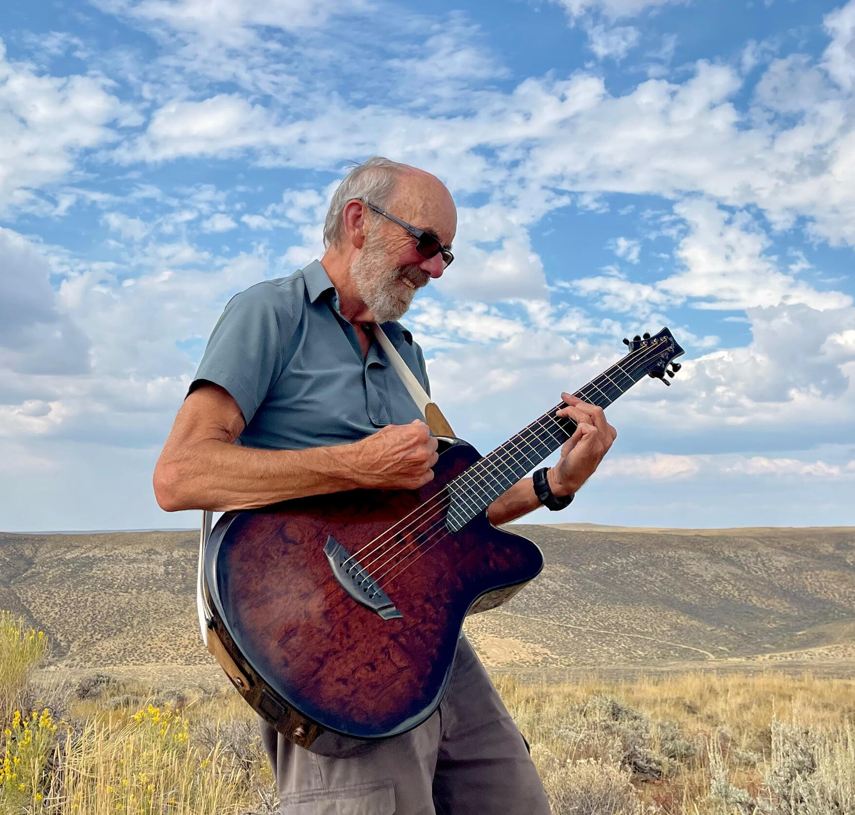 Once a proud member of Lucy and the Pronghorns, Johnny drifted for decades in a music-free landscape after the sudden departure of Lucy in the early 80s. That began to change when Covid descended on the planet and Johnny discovered mandolins. And then, in the heart of the pandemic, Johnny discovered that he was able to get hours of playing in during long administrative Zoom meetings at work with his microphone muted and camera turned off. For the first time in his life Johnny found himself actually being paid while playing music. Thus began his short and lucrative career as a professional musician (though alas, his performances were only heard by his dog). No longer with a paycheck but with abundant time, Johnny reconnected with his origins and bonded anew with the instruments that initiated his journey, the guitar and harmonica. And so he finds himself once again roaming the deserts and high mountains in search of Lucy in hopes of reuniting with her once again, and calling out through his music in hopes that she might hear.